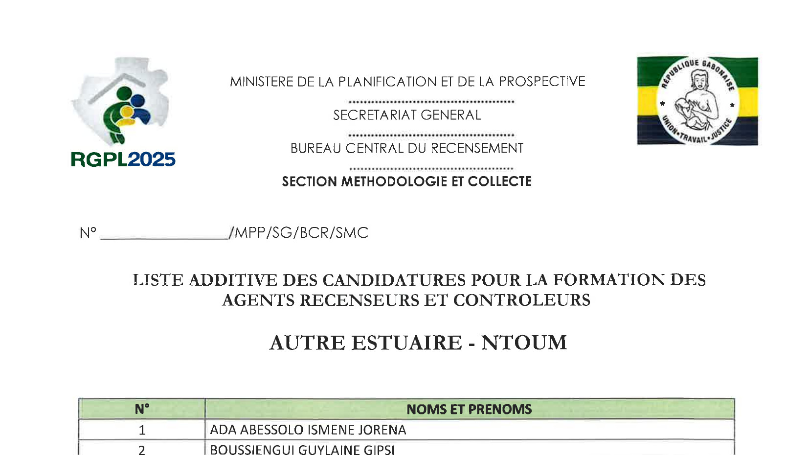 RGPL 2025 : publication de la liste des candidatures retenues pour la formation des agents recenseurs et contrôleurs.…